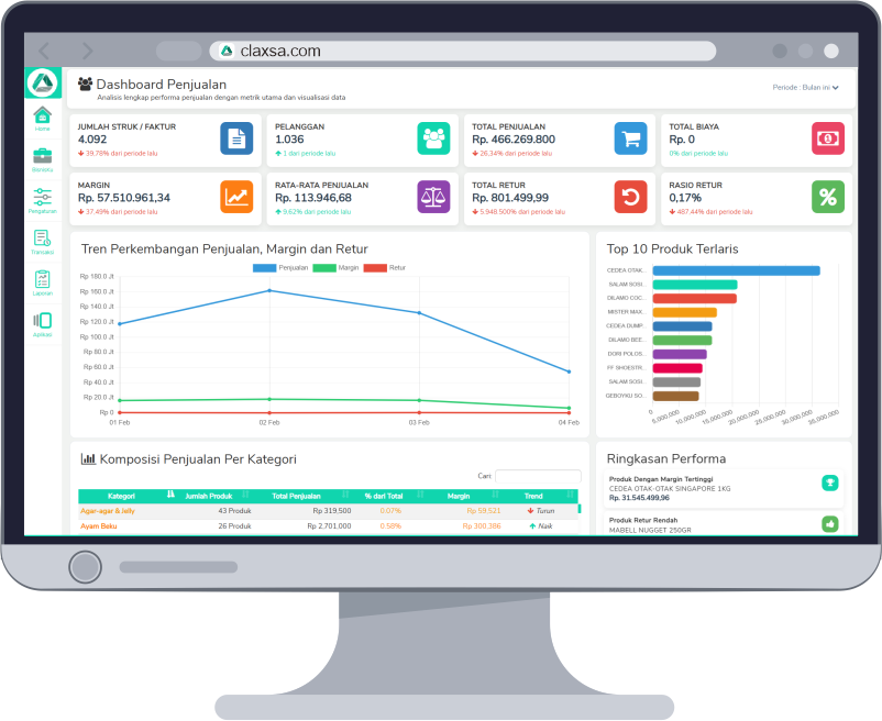 Claxsa adalah software bisnis dengan dukungan aplikasi kasir dan lengkap dengan semua fitur yang dapat membuat bisnis anda berkembang di semua segmen bisnis.